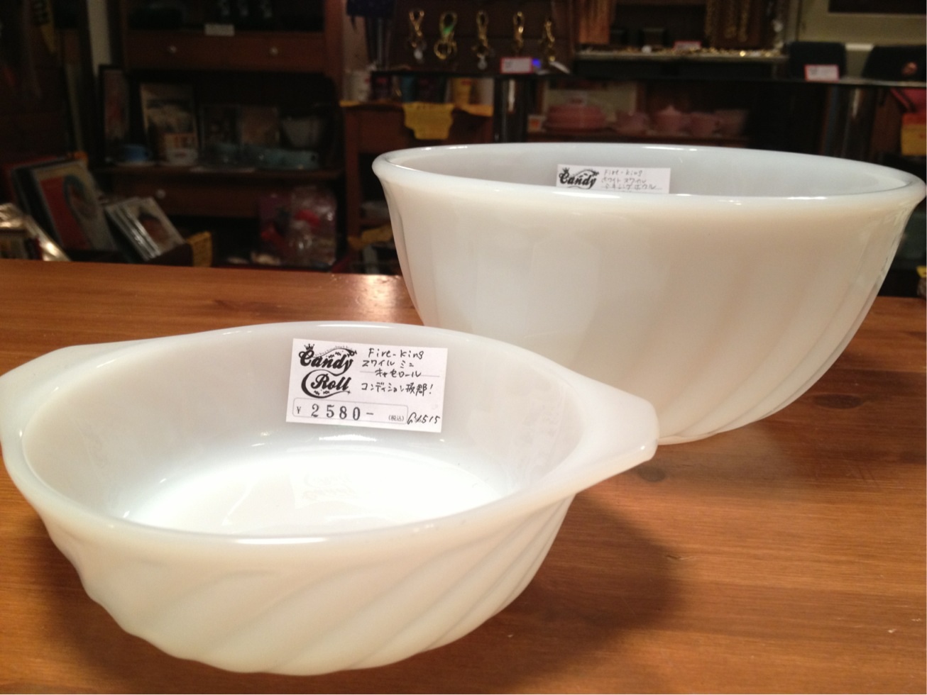 ☆Fire King ミルクホワイト スワールシリーズ
