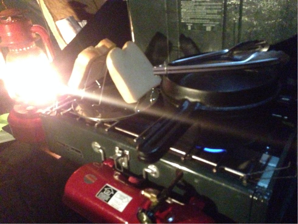 昼は、メスティンでご飯を炊き、鉄板焼き。