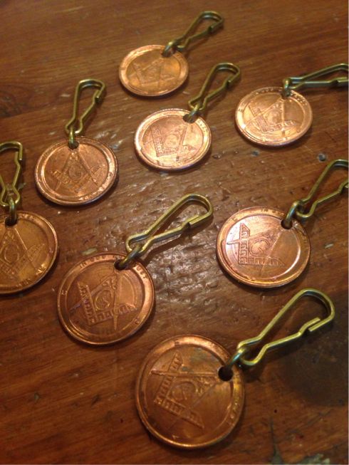 ビンテージのフリーメイソンコインを加工したCandy Rollオリジナルのキーホルダーです。