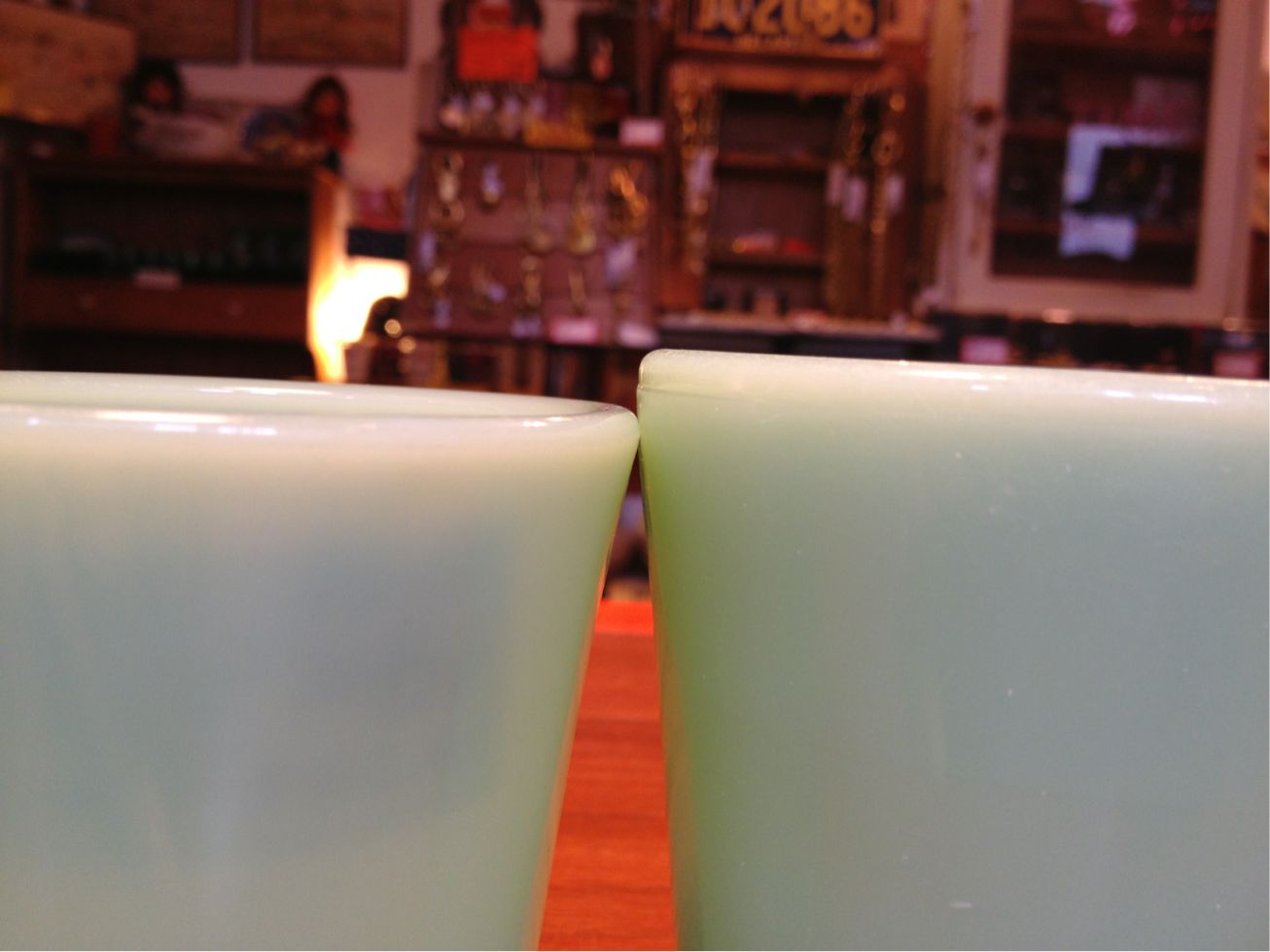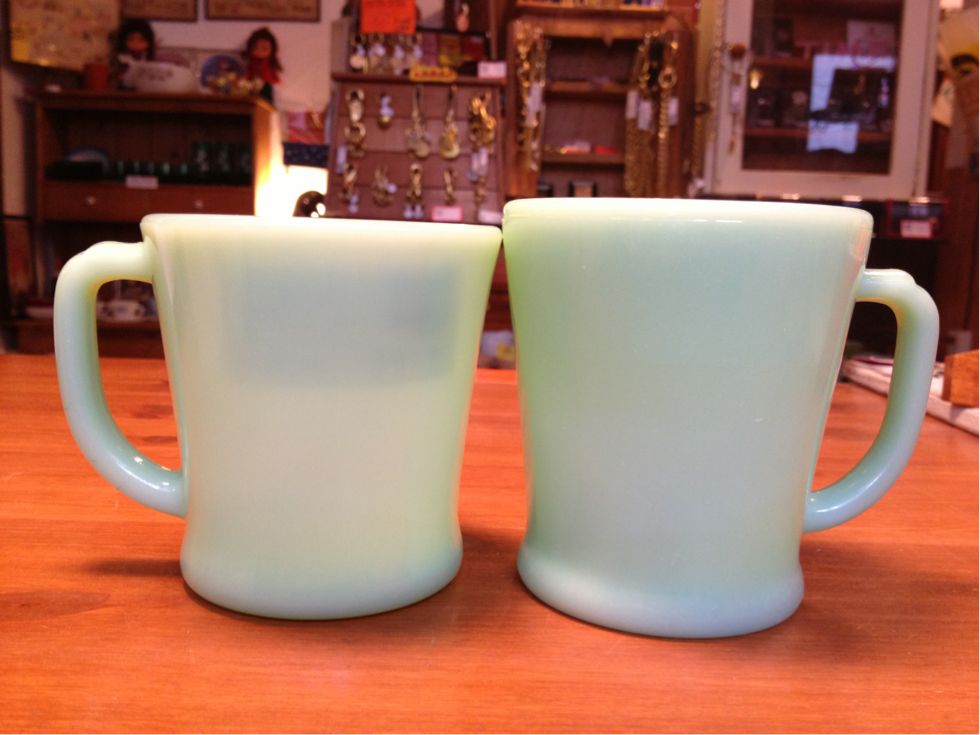 ↑写真左が底にくぼみのあるDハンドルマグ。