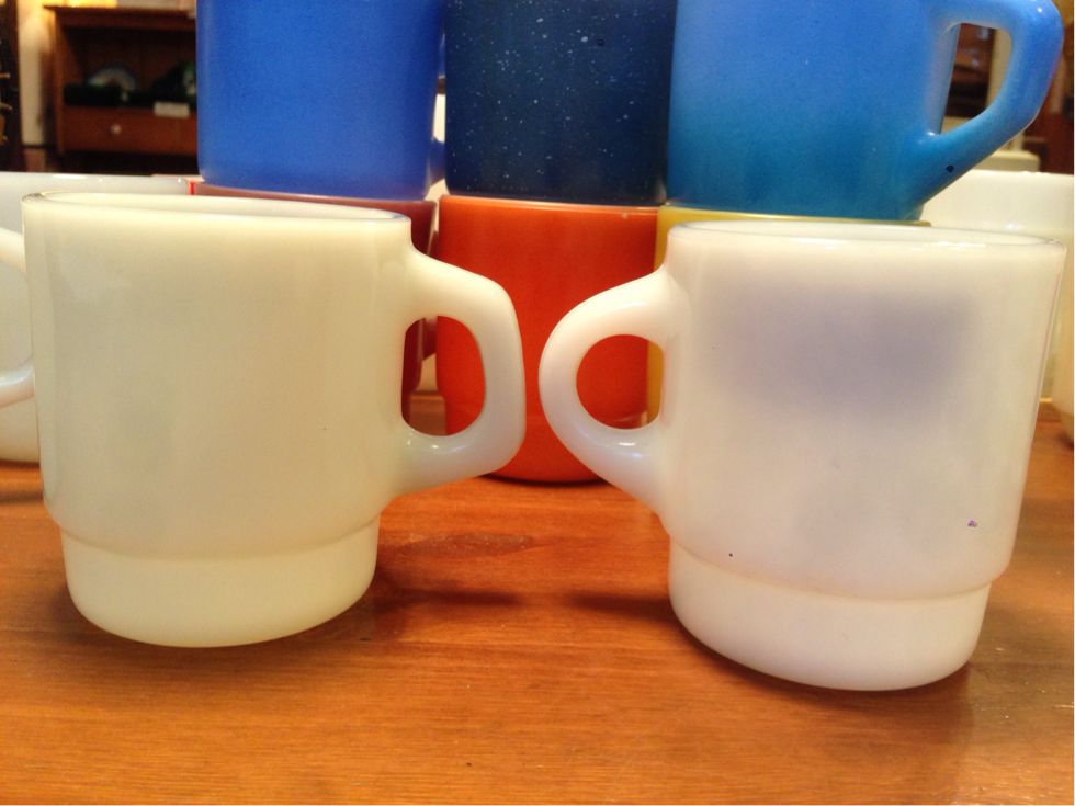 セントデニスカップのホワイト(2380円〜)とちょっと珍しい9ozマグのアーモンドカラー(3980円)もお勧めです。