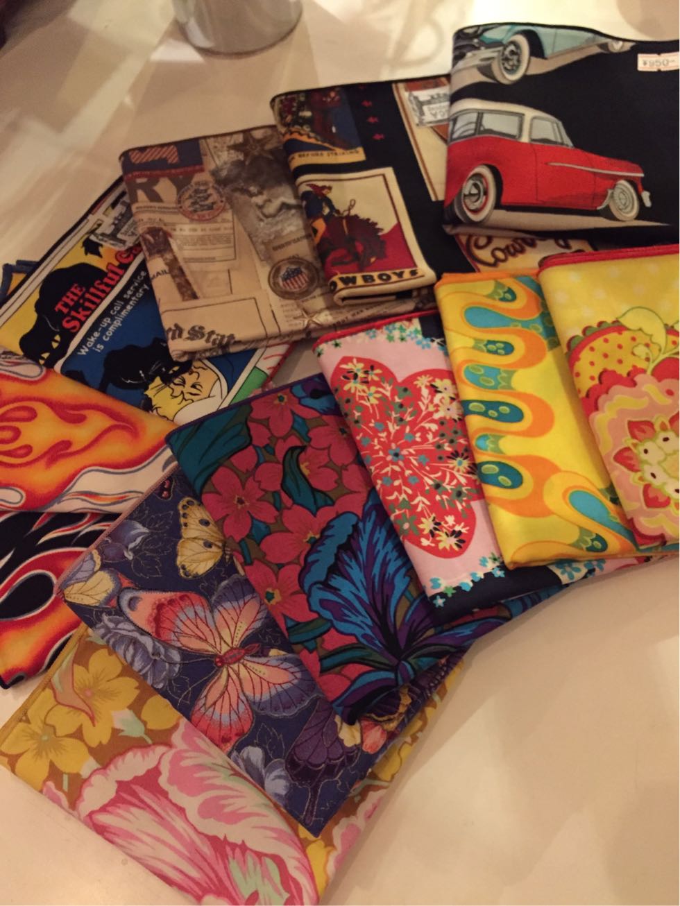 在庫が少なくなっていたUSAコットン生地のバンダナ&ハンカチを補充いたしました♪