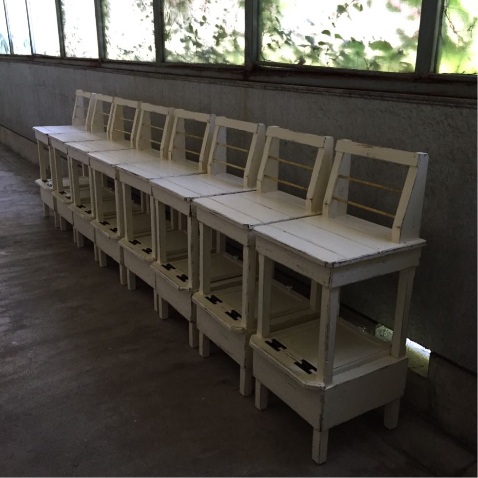 足元に扉付き収納を付け、アイボリーペイントにエイジング加工を施しました。